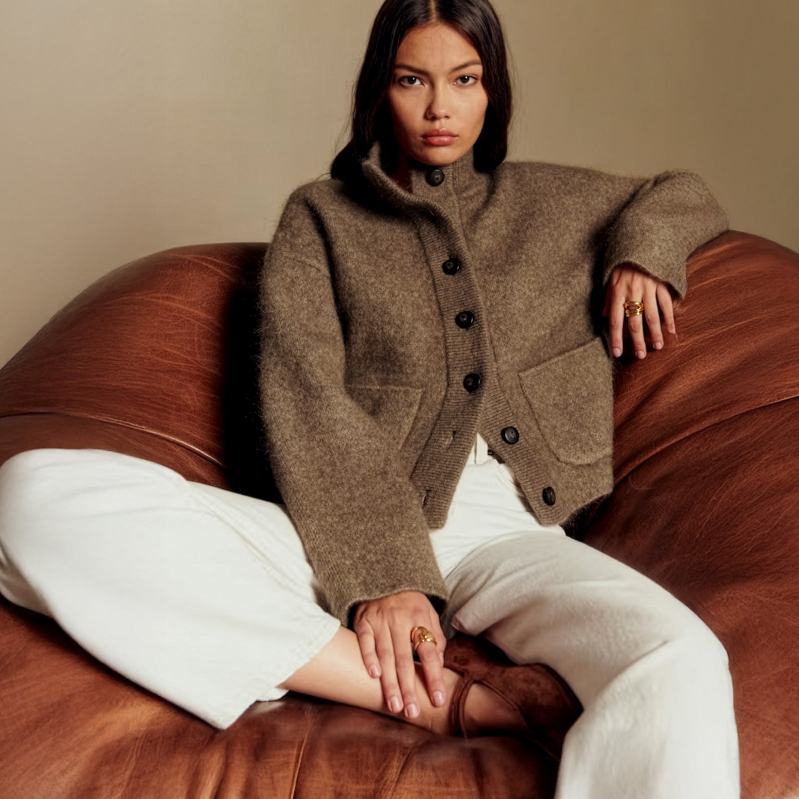 We were drawn to relaxed silhouettes with structure: wide-leg jeans, bow-tied blouses, cropped jackets, and knits that cocoon without overwhelming. A nod to heritage, made modern. Feminine but unfussy. Intentional but never overdone.