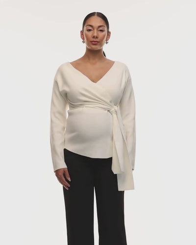 Soft and with just the right amount of stretch, our Cross Wrap Knit Feeding Top is available in both black and Ivory. This knit has a V-neck and clever cross wrap design detail, making for quick and discreet nursing access. Pair it with a wide-leg black pants for a sleek office look or with our premium denim on the weekends.