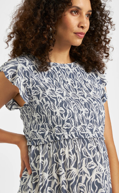 Lyla takes the shape of our best-selling Cassie dress with a soft white floral print on an indigo base for a seasonal twist. We love it with white trainers and a utility jacket for brunch with friends or a walk in the park. Crafted from eco-friendly LENZING™ ECOVERO™ stretch jersey, it’s soft, washes brilliantly and the side seam ruching promises to grow with your bump right through pregnancy.