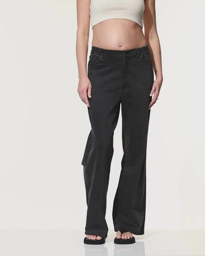 Relaxed Wide Leg Maternity Jeans in Washed Black